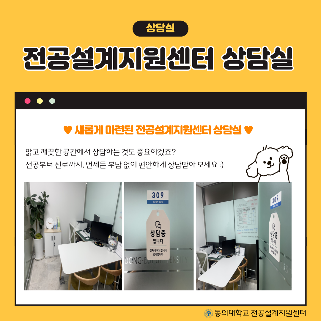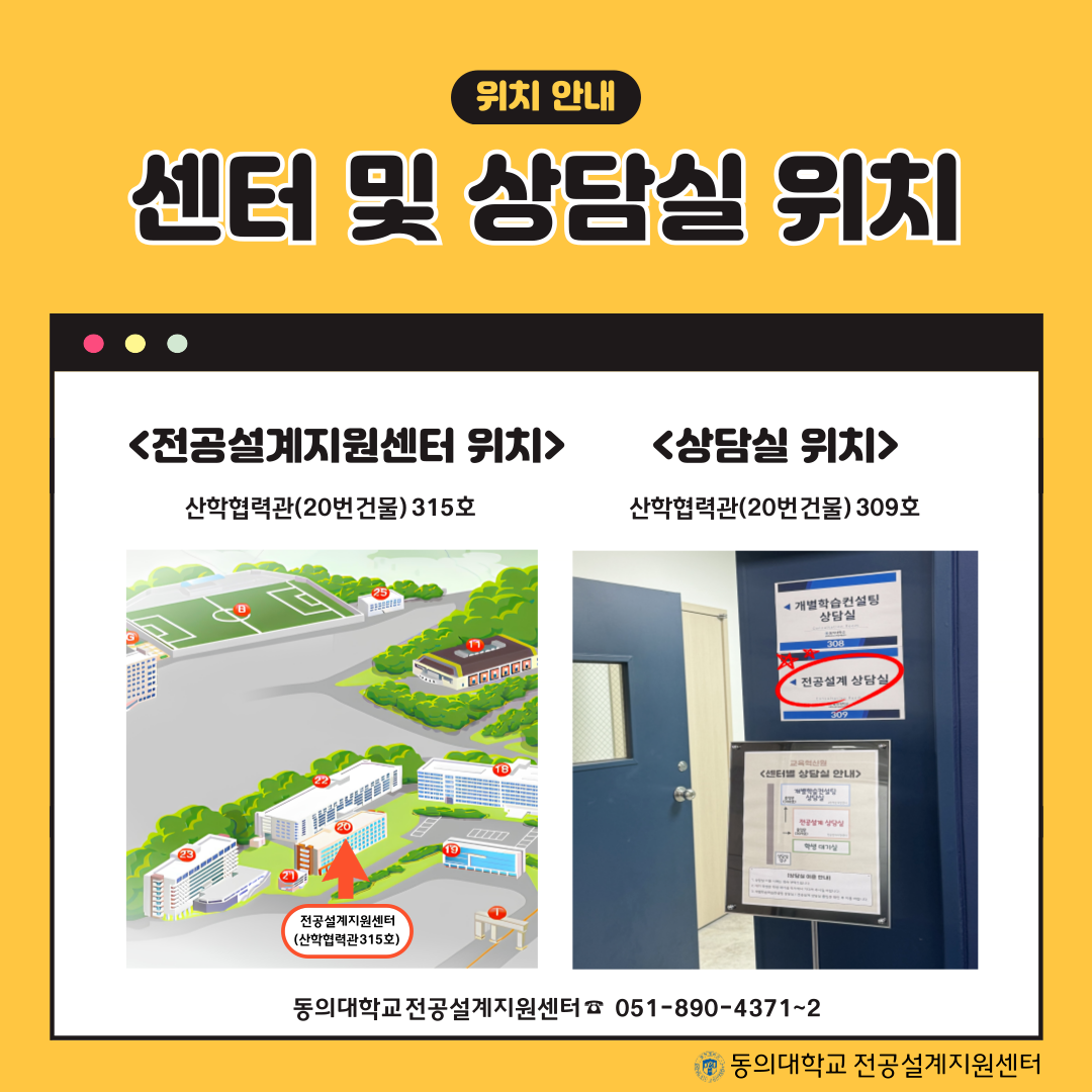 전공설계지원센터 상담실: 산학협력관(20번 건물) 309호
