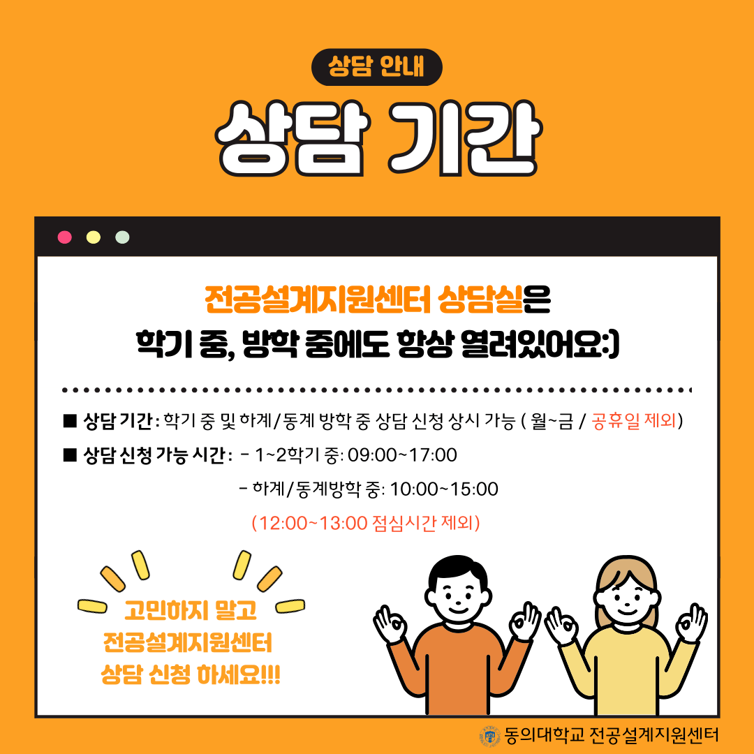 학기 중 및 하계/동계 방학 중 상담 신청 상시 가능