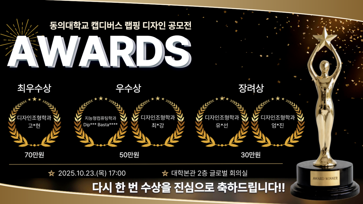 [동의대학교 캡디버스 랩핑 디자인 공모전]에 많은 관심을 보여주시고, 참가해주셔서 감사의 말씀을 드립니다.