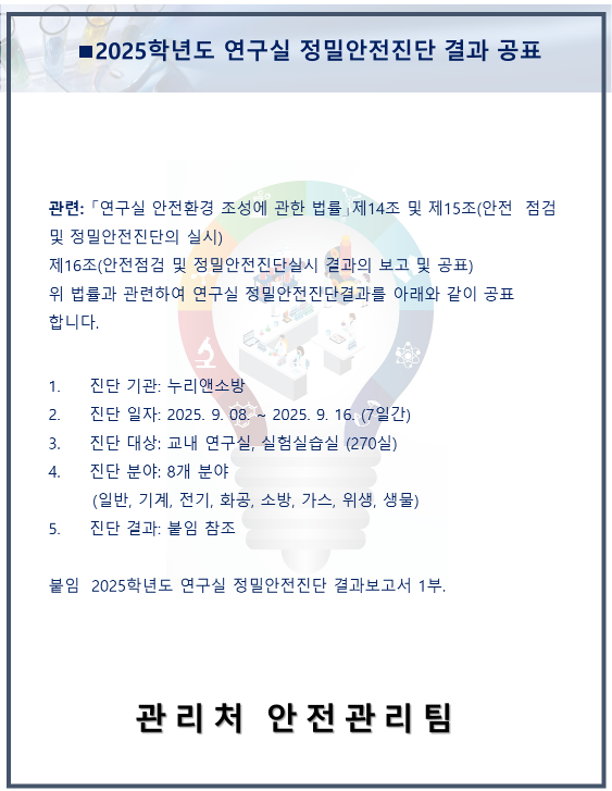2025년 연구실 정밀안전진단 결과 공표
