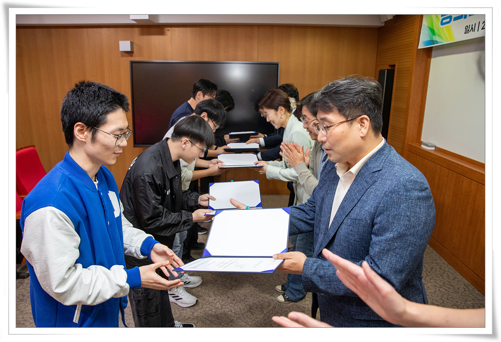 장학증서 전달식에는 각 단과대학의 추천을 통해 선정된 후배 장학생들과 선배인 동문 직원들이 참석해 증서 전달과 축하 인사 등 소통의 시간을 가졌다.